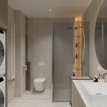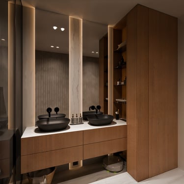 Elegantiškas, minimalistinis, bet prabangus interjeras sukurtas balansui tarp estetikos ir funkcionalumo.